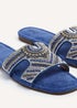 Linzi Indira Cobalt Blue Suede Aztec Design Embellished Slider Sandal