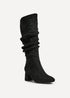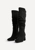 Linzi Inferno Wide Fit Black Faux Suede Ruched Long Heeled Boot