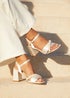 Our Iris heel is an elegant choice for your big day. Featuring a stunning ivory satin material and a pearl-embellished toe strap, these shoes will add touch of timeless beauty to your bridal look. Block heel height: 8cm.