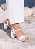 Our Iris heel is an elegant choice for your big day. Featuring a stunning ivory satin material and a pearl-embellished toe strap, these shoes will add touch of timeless beauty to your bridal look. Block heel height: 8cm.