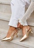 Linzi Izzie Wide Fit Gold Faux Leather Sling Back Low Court Heel