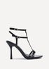 Linzi Jada Black Patent T-Bar Strappy Stiletto Heels