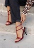 Linzi Jada Burgundy Patent T-Bar Strappy Stiletto Heels