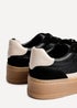 Linzi Kaia Black & Nude Faux Leather Lace Up Flatform Trainers