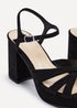 Linzi Keliah Black Faux Suede Crossover Platform Heels