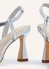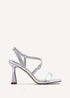 Linzi Klass Silver Faux Leather Front Fastening Open Toe Flared Heel