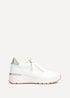 Our Kyla trainers are the perfect go-to for effortlessly elevating your everyday look. They feature breathable mesh and a unique zip detail, making them a stylish and functional choice. The small 5cm wedged sole and gold trim add a touch of elegance to complete the look..