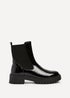 Linzi Landon Black Faux Croc Patent Leather Chunky Ankle Boot
