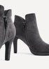 Our Layara heeled ankle boots redefines elegance with their plush faux suede construction, rounded toe, and convenient inner zip closure for effortless wear. Newly enhanced with a soft, cushioned insole, they ensure luxurious comfort all day long. Platform height: 1.5cm Heel Height: 9.5cm.
