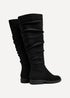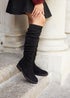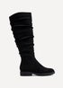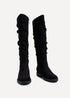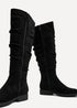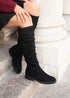 Linzi Liana Black Faux Suede Knee High Flat Ruched Boots