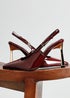Our Lizzie heels boast a sleek patent finish, exuding sophistication with every step. The striking gold chrome 9cm stiletto heel adds a touch of glamour, elevating your ensemble to new heights. Made with a cushioned inner sock to ensure all evening comfort..
