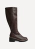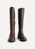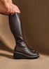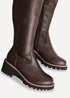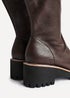 Linzi Maintain Wide Fit Brown Faux Leather Stretch High Leg Wedge Boot