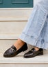 Experience the perfect blend of comfort and style with our Maison loafers. Designed with a chic croc-effect finish and a luxurious gold trim, these loafers add a touch of sophistication to any outfit. Enjoy all day comfort with a cushioned insole, making every step effortless.