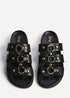 Linzi Marcia Black Faux Leather Studded Gladiator Slip On Sandals