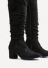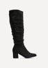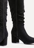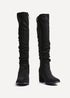 Linzi Margot Black Faux Suede Knee High Block Heeled Ruched Boot