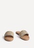 Step into effortless style with our Mariana flat slider sandals. Featuring a chic bohemian-inspired front strap with intricate woven patterns. The sole is embellished with metallic studs along the edge, adding a subtle touch of elegance and the cushioned insole offers all-day comfort.