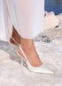 Make your special moment complete with our Matched bridal court heels. These elegant shoes feature a pointed toe design and a slingback strap, with an 8.5cm stiletto heel. Indulge in the luxury of comfort with a cushioned insole, allowing you to dance the night in style..