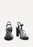 Elevate your fashion with our luxurious Matilda diamante heeled sandals. Adorned with three front straps embellished with sparkling diamantes, and featuring a sleek 9cm block heel. Complete with a cushioned in-sock for ultimate comfort and a stylish wrap around ankle strap..