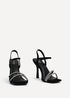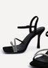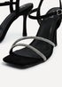 The latest chic statement needed for those special moments, our Mesmerize Heeled Stilettos feature asymmetric diamante embellished front straps and an adjustable wrap around ankle strap. Heel Height: 10cm..
