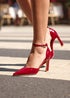 Make a statement in our Moira court heels, designed with a pointed toe and V-cut vamp. Featuring a closed back and wrap around ankle strap. Set on a slender 9.5cm stiletto heel with a cushioned insole for effortless wear.