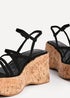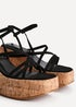 Linzi Orbit Black Faux Suede Strappy Cork Flatform Sandal
