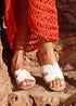 Linzi Petra White Faux Leather Link Design Flat Sandal