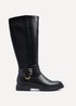 Discover the timeless elegance of our Regent boot. With a modern twist and a hint of uniqueness from the gold buckle accent, these high leg boots are a must-have addition to your wardrobe. The stretch back panel, full length side zip, and soft cushioned innersock provide both style and comfort.