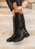 Linzi Regent Black Faux Leather High Leg Boot