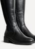 Luxurious Faux Leather Classic Riding Boot, Adorned with an Elasticated Knitted Back Panel and Full Length Zipper. Standing a Substantial 4.5cm Heel and an Elegant 36cm Boot Length.
