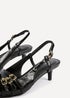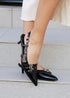 Step out in style with our Retro slingback court heels. The perfect blend of classic style and modern sophistication with their pointed toe and triple buckle strap design. These court heels feature a cushioned insole and an adjustable slingback strap ensuring a secure and customised fit, while the kitten heel provides just the right amount of height. Heel Height: 5cm.