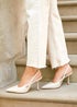 Experience exquisite style with our Rhea court heels. Adorned with a pointed toe and a sleek 8.5cm stiletto heel. These stunning courts also boast a delicate slingback strap and a cushioned insole for unparalleled comfort.