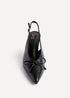 Linzi Ribbon Black Faux Leather Slingback Court Heel