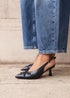 Our Ribbon court heels exude timeless elegance, featuring a sleek silhouette and a delicate bow detail. Finished with a slingback strap and a cushioned insole for comfort, they are the perfect choice for any occasion. Heel Height: 6.5cm.