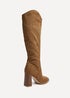 • Linzi Rodeo Tan Faux Suede Western Long Block Heeled Boot