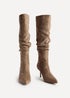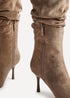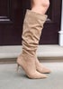 Linzi Rosenna Beige Suede Ruched High Leg Heeled Boot