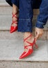 Linzi Sammi Red Faux Patent Caged Upper Court Heel