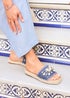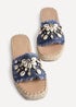 Linzi Seaside Blue Raffia Shell Embellished Flat Slider