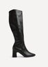 Experience elegance with our Slate knee-high boot. Crafted from stretch faux leather for a snug fit, it features a square toe and a full-length zipper for effortless dressing. Designed with a 6.5cm block heel and a cushioned insole, this boot blends comfort with style. With a 40cm shaft, it is the perfect choice to enhance any ensemble.