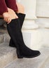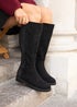 Linzi Steel Wide Fit Black Faux Leather Knee High Stretch Boot