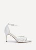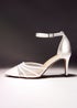 Walk down the aisle in timeless elegance with our Tianey wide fit bridal courts. Designed with a delicate front mesh detail and a sleek stiletto heel. The closed back and wrap around ankle strap provides a secure fit, while the plush cushioned insole ensures all day comfort. The perfect finishing touch to your bridal look. Heel Height: 8.5cm.