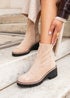 Linzi Trish Beige Faux Suede Wedged Heel Ankle Boot