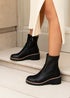 Linzi Trish Black Faux Leather Wedged Heel Ankle Boot