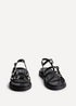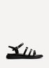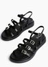 Linzi Twilight Black Faux Leather Triple Buckle Footbed Sandals