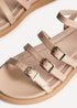Linzi Twilight Sand Faux Leather Triple Buckle Footbed Sandals
