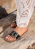 Step in style this summer with our Tyla flat slider sandals. Featuring a slip-on design with a front strap adorned with a bamboo effect buckle. Indulge in comfort with the moulded footbed.