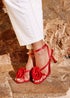 Linzi Valentine Red Satin Stiletto Heeled Sandals - Size 6