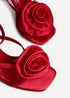 Indulge in the luxury of our Valentine heeled sandals. Adorned with a lavish flower embellishment and secured with a wrap around ankle strap. The cushioned insole provides ultimate comfort, making them the perfect choice for any occasion. Heel Height: 9cm.