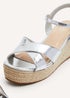 Linzi Vision Silver Faux Leather Crossover Rope Detail Wedge