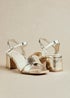 Linzi Vivian Wide Fit Gold Faux Leather Block Heeled Sandals
