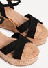 Linzi Vivid Black Faux Suede Crossover Cork Wedge